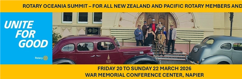 The countdown is officially on — and registrations are now open for the Rotary Oceania Summit 2026, taking place 20–22 March 2026 in the stunning Art Deco city of Napier, New Zealand.